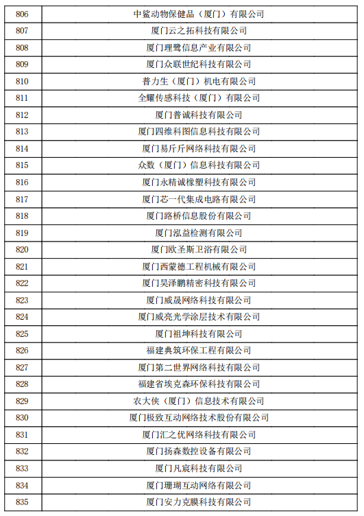 838家國家級高企名單